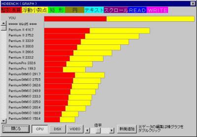 WinNT上で計測したためWin95の時よりも結果がよくなっています。ちなみに
