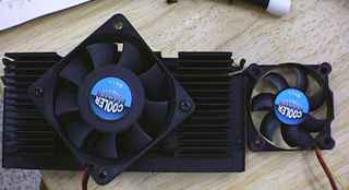 DRACO PUに風神のFANを取り付けた所。右のFANがDRACO純正のFAN。